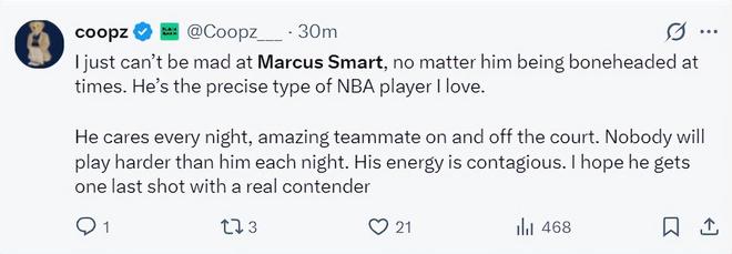 過去的7場比賽,斯瑪特場均13.9分3.6籃板2.6助攻,命中率47%,三分命中率47%,真實命中率63%。