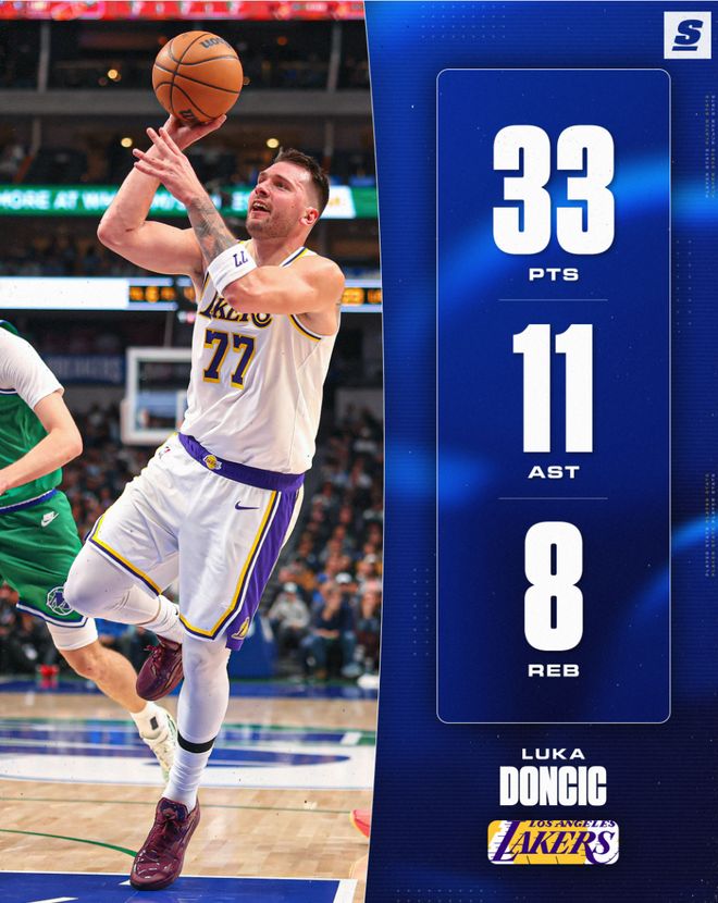 湖人隊116-110涉險擊敗獨行俠。這場比賽湖人與獨行俠是一場極限拉鋸戰,湖人領先14分-落後14分隻用了15分鍾左右,但最後的8分鍾裏湖人打出27-6的攻防浪潮完成逆轉,準確的說是5分45秒內湖人就一波流鎖定勝局了。東契奇拿到33+11+8是數據最出色的。