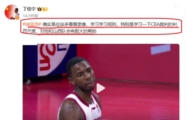 CBA裁判專家丁佳寧,給山西隊外援迪亞洛提了一個建議,希望他能夠好好學習一下CBA的規則,學習一下裁判的判罰。這樣做,對他和山西隊都是有巨大的好處。