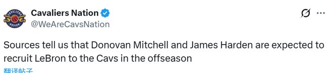 消息源表示,哈登與米切爾堅信,騎士隊具備在本賽季衝擊總冠軍的實力。即便克利夫蘭成功奪得2026年總冠軍,二人仍會在休賽期向詹姆斯發出邀約。畢竟,沒有哪一位超級球星會滿足於隻手握一座總冠軍獎杯。
