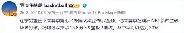 2月10日,CBA圈內悄然炸開一條消息:遼寧男籃正式簽下本賽季第七名外援——艾澤亞·布羅金頓。這位來自澳洲NBL新西蘭破壞者隊的“效率型悍將”,沒有華麗的履曆,沒有耀眼的履曆,卻用一組近乎冷酷的數據,叩響了四冠王的門扉。