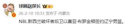 著名媒體人球圈趙探長給出了實錘,確認布羅金頓加盟遼寧。