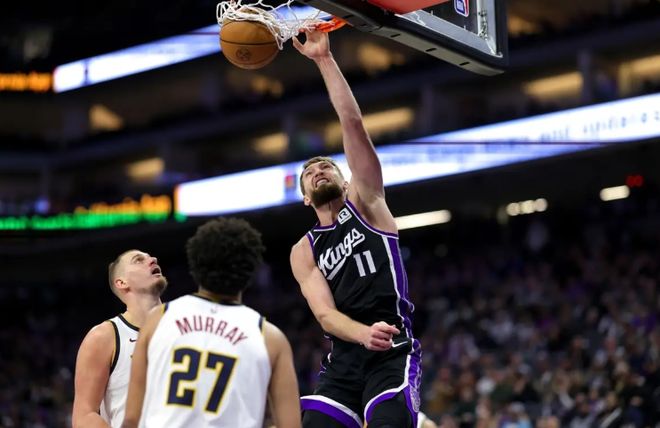 易邊再戰,穆雷背後運球急停甩開防守,幹拔中距離絲滑命中,約基奇張開長臂成功攔截蒙克上籃,保護下籃板後送出縱貫全場助攻,約翰遜前場接球完成掛筐暴扣,掘金領先到6分打停國王。約基奇連續假動作點飛尤班克斯上籃再打進,威少三分線外再次嚐試出手,命中本場首記三分,三節打完,國王82-85落後掘金3分。