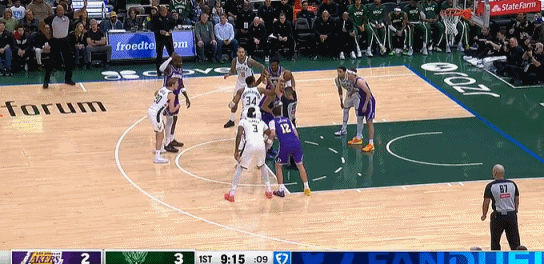 雄鹿突然斷電,整整8分鍾0運動戰得分,僅靠罰球得到可憐的5分,湖人一波25-5攻,半場KO!