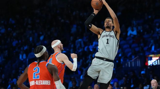 但這份輝煌,卻始終伴隨著爭議與不尊重!就拿此前,NBA杯賽半決賽與馬刺的對決來說,這場在拉斯維加斯中立場地進行的比賽,本應是兩大新星亞曆山大與文班亞馬的巔峰對話,卻將雷霆不受球迷待見的一麵展露得淋漓盡致。當文班亞馬站上罰球線時,全場高呼“MVP”的呐喊震耳欲聾;而當亞曆山大走上罰球線,迎接他的卻是鋪天蓋地的噓聲。賽後,美國的一個數據統計網站統計了一份有意思的數據,他們用投票的方式選擇各自支持的球隊,結果85%的球迷都站在馬刺一方。為何雷霆會遭到一些球迷的區別對待呢?除了自身強大,令一些偏激球迷感到不爽外,聯盟對雷霆這支新貴的力捧,則是大家一直排斥他的主要原因。