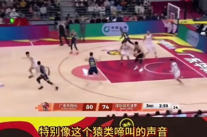 結果在抖音的CBA官方直播間,CBA的官方解說犯病了,他在第三節嘲諷廣東主場的球迷喊聲是“猿聲”,還說“聽到了兩岸猿聲”、“剛才誰要球的聲音特別喜感,特別像猿聲啼叫”、“感覺誤入了花果山”。