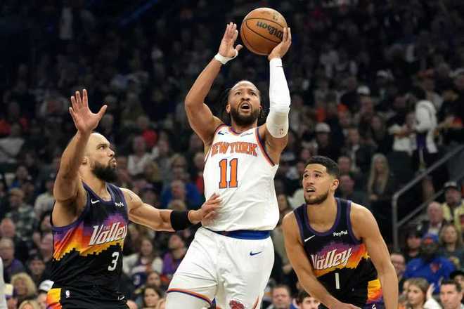 太陽上一場客場117-98大勝灰熊,尼克斯上一場主場123-111戰勝快船。本場太陽缺少傑倫-格林,尼克斯缺少亞布塞萊、哈特與沙梅特。首節開局太陽2-6落後,太陽內外開花一波10-0攻勢反超比分,太陽之後繼續擴大18-10領先優勢。狄龍連續得分擴大25-14領先優勢,尼克斯一波6-0攻勢追分,吉萊斯皮三分命中。麥克布萊德三分命中,首節結束太陽28-23領先尼克斯。首節尼克斯22中9,其中三分9中3,麥克布萊德6中4得到10分與布倫森7分;太陽26中10,其中三分15中5,狄龍3記三分11分與布克5分。