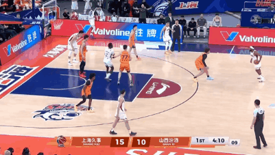 暫停過後,山西隊做出調整,迪亞洛替補狀態不佳的奈特上場。上海男籃也做出應對,閆鵬飛、懷特塞德上場給足對手內線壓力。古德溫與懷特塞德一裏一外很快幫助上海男籃把分差拉開到了兩位數。