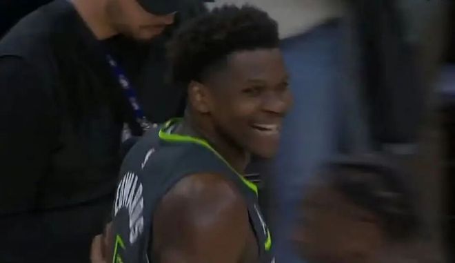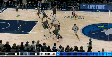 (森林狼主場有不進第一顆球不坐下的傳統)