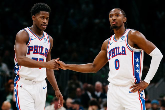 76人方麵,馬克西場均可以貢獻30.9分4.5個籃板6.8次助攻,恩比德場均23.5分7.1個籃板,埃奇庫姆場均16.1分5.5個籃板4.2次助攻,喬治場均16分5.5個籃板,格萊姆斯場均14.4分。