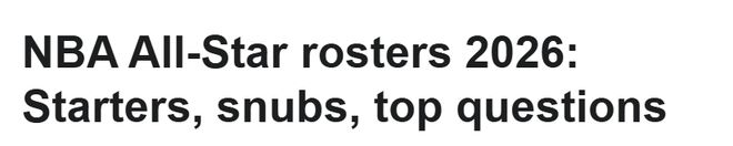 北京時間1月20日,經過數周球迷、媒體與球員的投票評選,2026年NBA全明星賽首發陣容正式確定,西部首發是亞曆山大、約基奇、東契奇、文班亞馬和庫裏,東部首發是字母哥、坎寧安、布倫森、馬克西和傑倫-布朗。全明星替補名單將於2月2日公布。