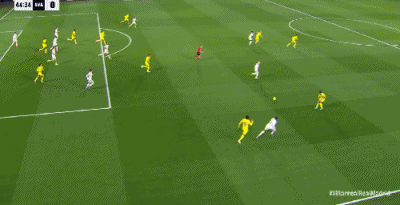 第47分鍾,維尼修斯左路傳中被擋,姆巴佩撿漏破門,皇馬1-0黃潛