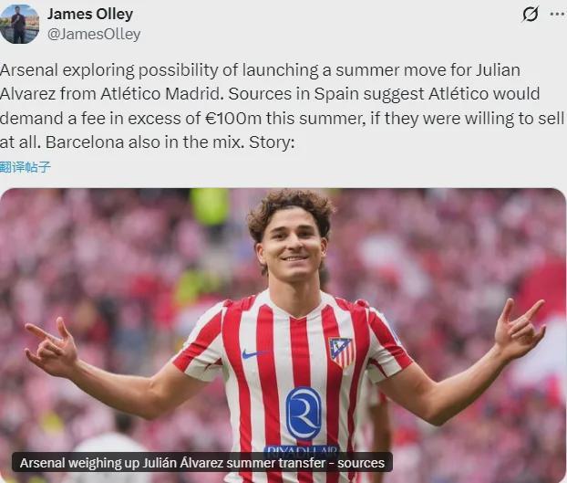 之前DO隻是說阿森納去年夏天曾考慮過阿爾瓦雷斯,今後有可能繼續簽這個級別的球員,但JO直接說今年夏天還想買他!是不是真的我覺得還得看看再說。