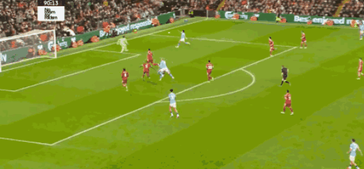 傷停補時第93分鍾,阿利森禁區內犯規,送給了曼城一粒點球,哈蘭德穩穩主罰命中,打破了自己在安菲爾德球場的進球荒,將全場比分定格為了2-1,比賽最後時刻,索博斯洛伊破壞了曼城絕對進球的機會,被主裁判直接紅牌罰下。