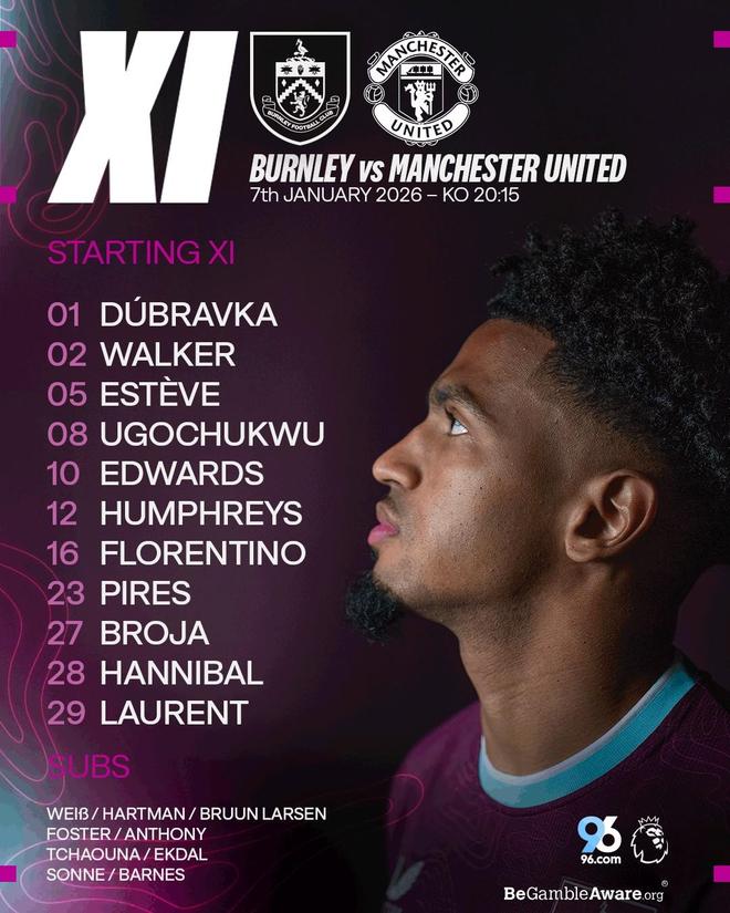 北京時間1月8日4:15,英超第21輪焦點戰,曼聯作客摩亞球場挑戰伯恩利,本場主裁判為阿特維爾,賽前雙方首發出爐。
