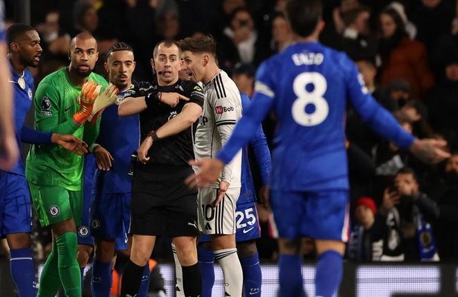 比賽開始後切爾西立馬主動進攻,第9分鍾恩佐開出角球直接旋到門前,萊諾不敢怠慢將球擋出;第20分鍾,恩佐再次角球造險,凱塞多跟進補射被封堵;第22分鍾,場上風雲突變,哈裏-威爾遜高速前插即將形成單刀,庫庫雷利亞不得已拉人犯規,因為是破壞絕佳的單刀機會,西班牙邊衛被紅牌直接罰下;切爾西本賽季英超已領到五張紅牌,隊史單賽季僅次於2007-08賽季。
