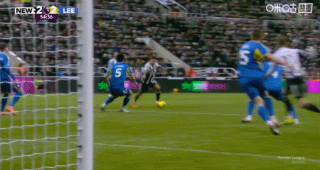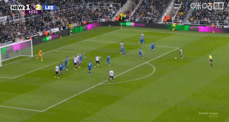 第54分鍾,吉馬良斯傳中,喬林頓甩頭攻門扳平比分,紐卡2-2利茲聯