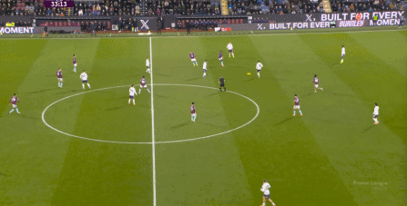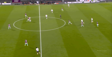 真正打開了空間的進攻,直至第31分鍾才出現,庫尼亞先拉邊,再進中路,就和布魯諾有了聯係的可能性: