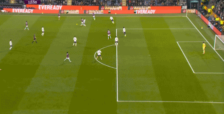為數不多打穿肋部的好機會,還需要布魯諾指揮多爾古去跑位: