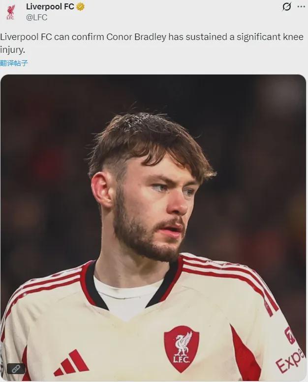 官方:利物浦宣布布拉德利膝蓋嚴重受傷,這名右後衛將在未來幾天接受手術,然後開啟自己的康複進程。