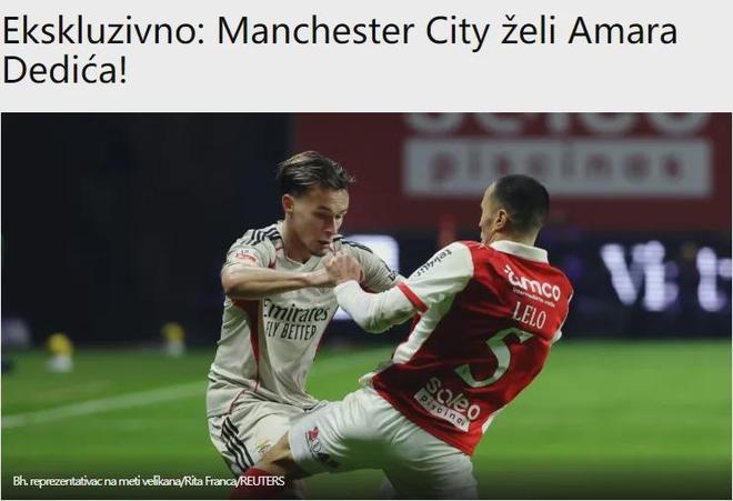 波黑媒體Oslobodjenje消息,在簽下塞梅約之後,曼城現在正尋求加強防線,而本菲卡後衛阿馬爾-德迪奇正是他們的目標之一。