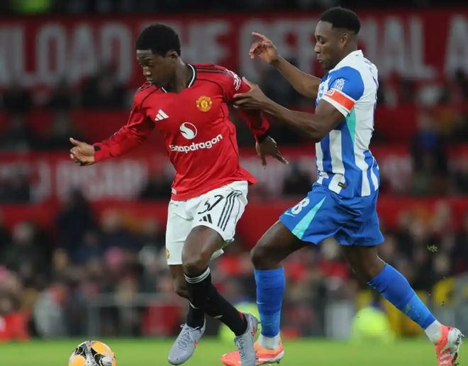 布萊頓這場比賽其實陣容並不齊整的,他們也進行了一定程度的輪換,所以曼聯和布萊頓都算是陣容不完整的情況下對陣,而且曼聯拿出了5中場的結構,B費+芒特+庫尼亞+梅努+烏加特搭檔中場,塞斯科突前。