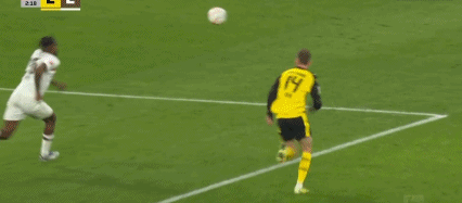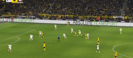 第45+1分鍾,阿德耶米突破傳中,布蘭特破門,多特1-0聖保利