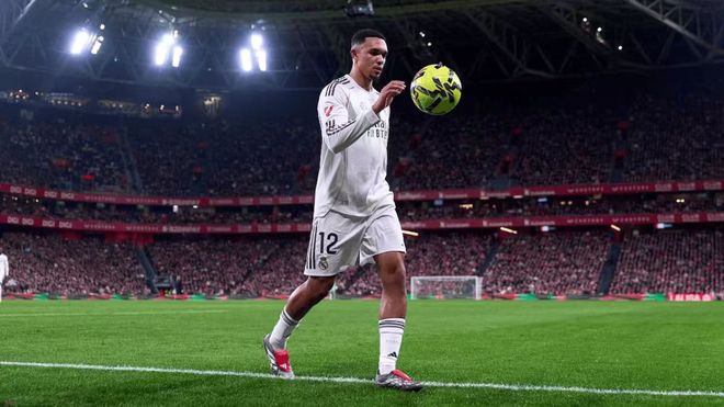 站在阿諾德的角度,這支皇馬也並沒有想象中來得那般美好。效力於利物浦時期,無論是在克洛普還是在斯洛特的手下,阿諾德都是紅軍實際上的指揮官,球隊的由守轉攻要由他經手,通過他的長傳球完成提速,到了前場,他的傳球和任意球同樣是球隊製造威脅的重要手段,因為他在進攻端的威脅實在突出,利物浦甚至可以容忍他在防守端出工不出力。但到了皇馬,阿諾德的身上沒有了特權,反而要承擔大量自己不擅長的單防與協防工作,這樣的定位,才是他在皇馬不算如意的根本原因。
